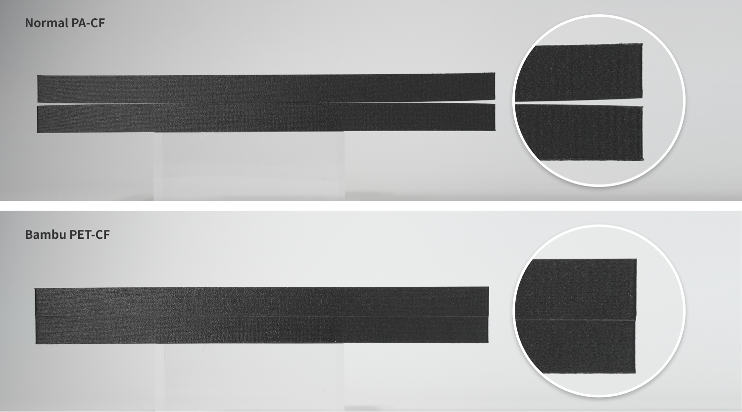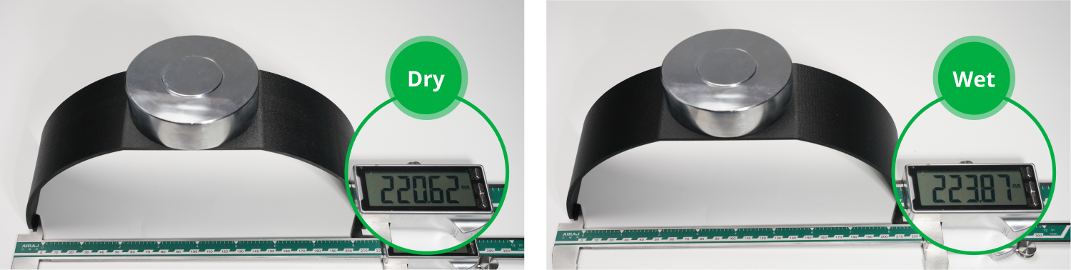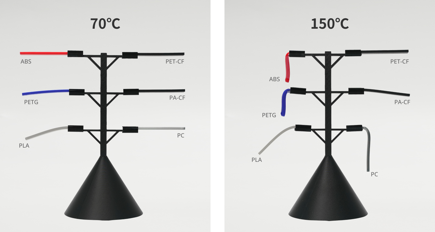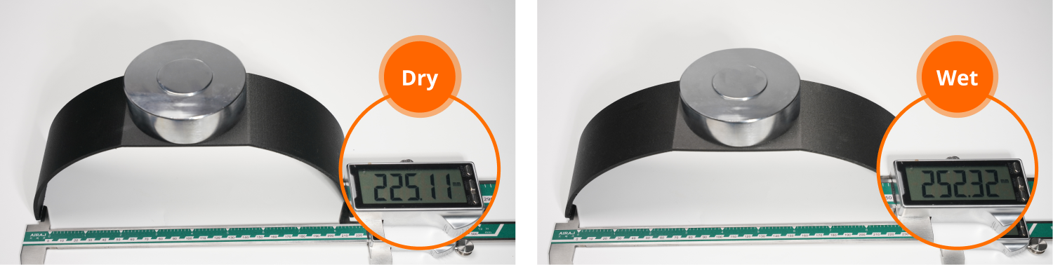 Selv under mættede fugtforhold bevarer PET-CF sin styrke og stivhed med kun minimale tab, hvilket gør det velegnet til prints, der skal bruges i miljøer med høj luftfugtighed.